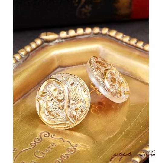 - チェコ・ボヘミア ガラス クリア フラワー ピアス チェコガラス パタミン アクセサリー スタッドピアス