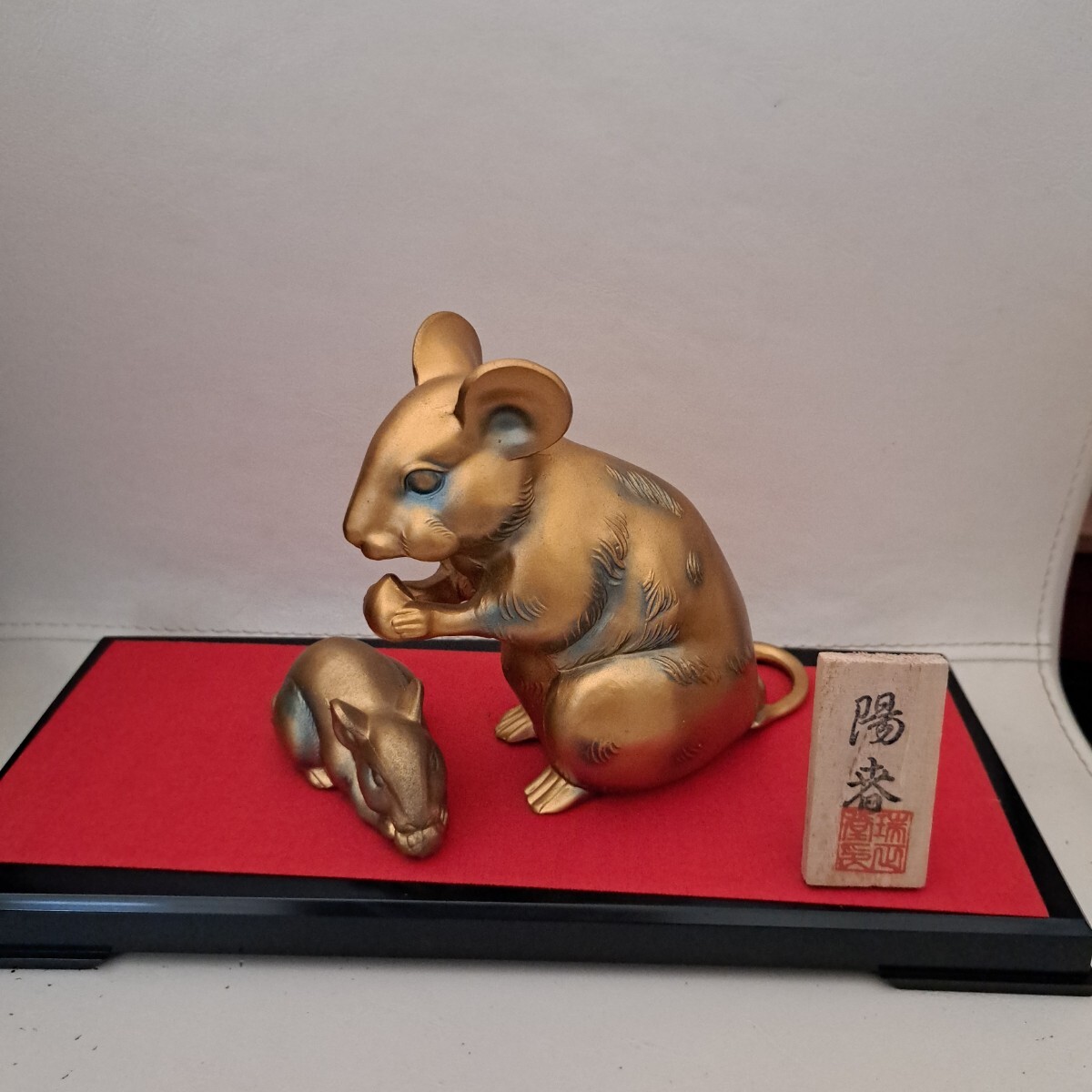- 金色のネズミの置物 大小セット 干支置物 陽春 瑞正謹製 置物 縁起物 インテリア 金属工芸 オブジェ 干支