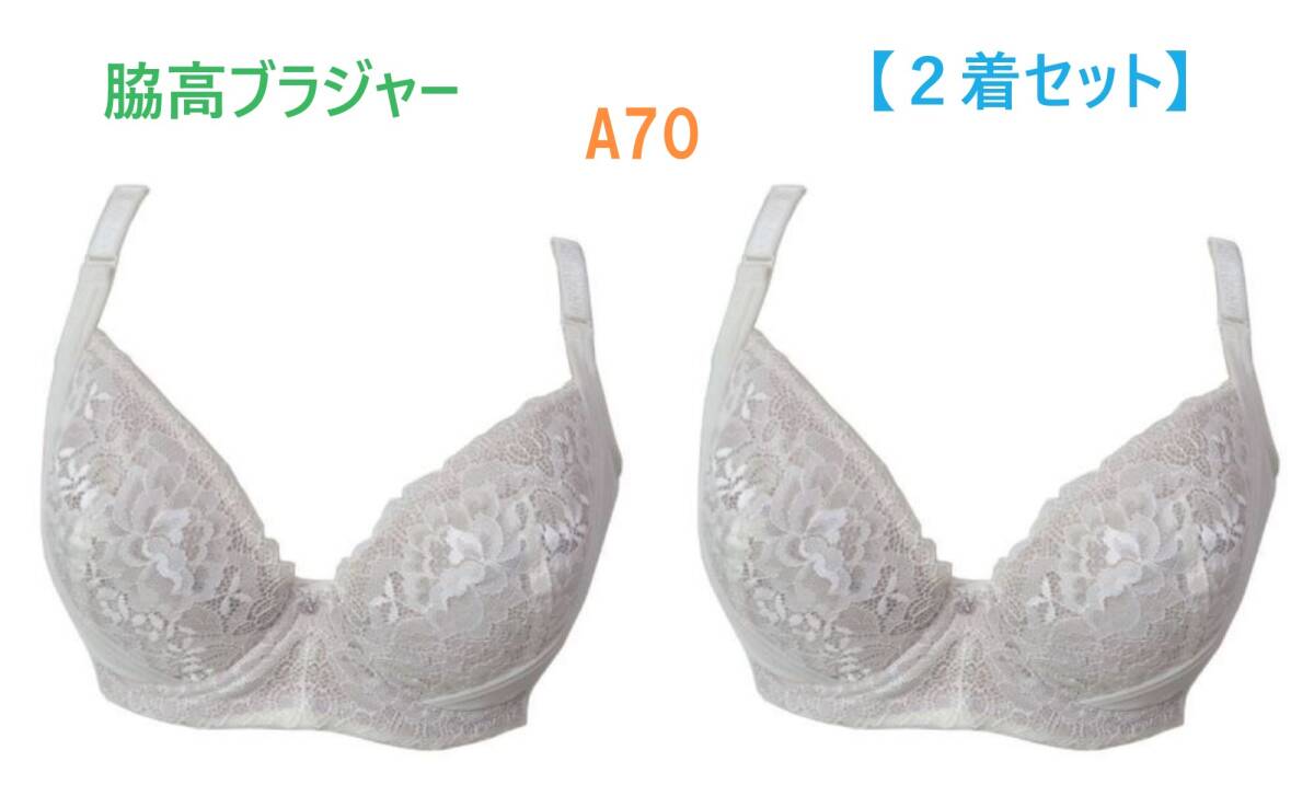 - 【2着セット】A70・シルクベージュ 脇高ブラジャー(ワイヤー入り) 補正下着 2重リフトアップパネル カップ裏 綿100% 2189円