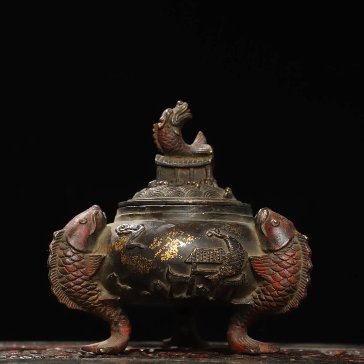 - ▽鴻▽ 銅製 拓金 魚躍龍門熏香炉 置物 賞物 古賞物 古董品 時代物 稀少珍品 中国古玩 中国古美術