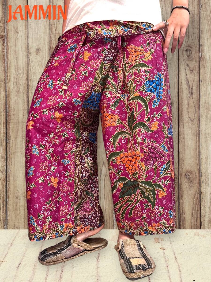 - バティック花柄タイパンツ アジアン ヒッピー エスニック 花柄 タイパンツ