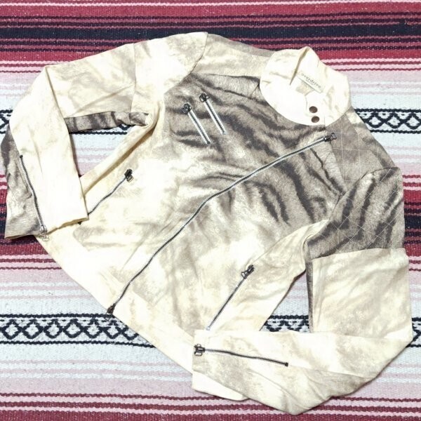 > 高級モデル!!イタリア製!!【OVERDRIVE】オーバードライブ インポート ライダース ジャケット アニマル柄 ホワイト系 M相当/Y33616j