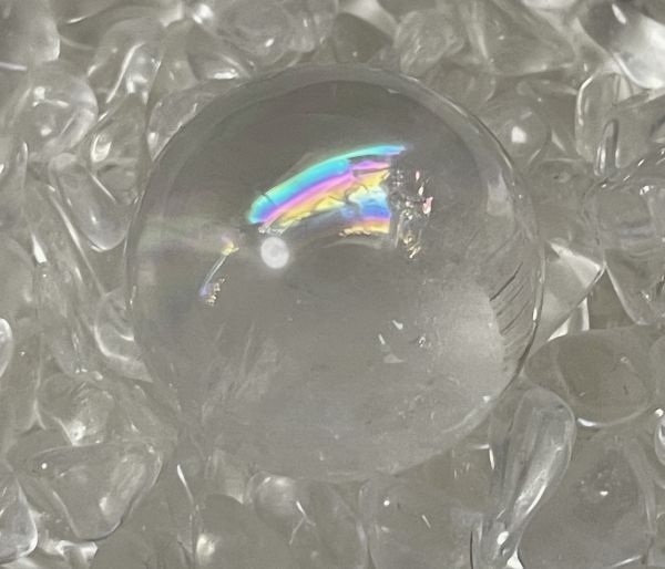 - 虹色 水晶 ボール レインボークリスタル 球 水晶玉 クォーツ 白水晶 パワーストーン 癒やし 運気アップ お守り 原石 約3cm
