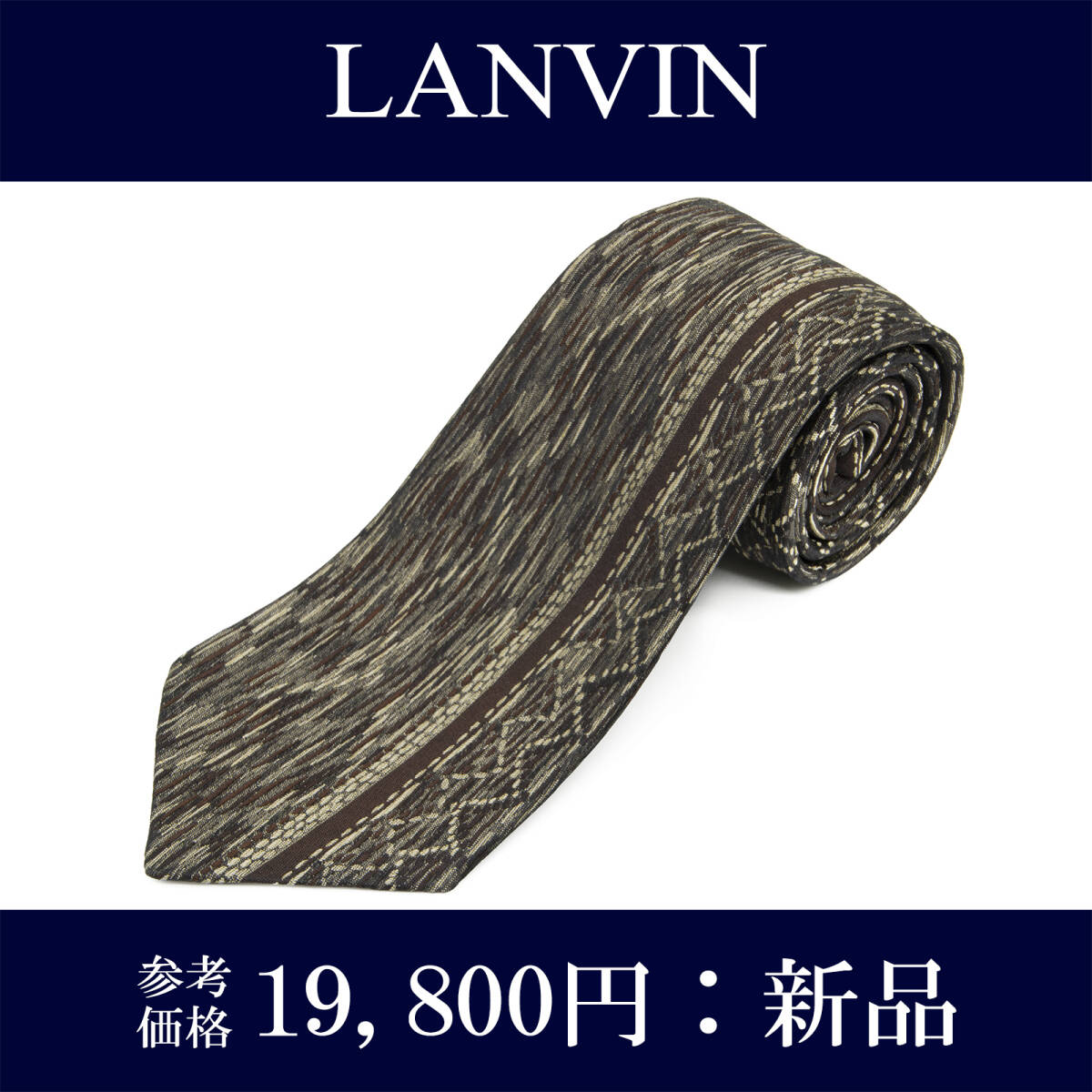 - 送料無料 ランバン ネクタイ レギュラータイ ジャガード 新品 シルク ゴールド 茶色 ブラウン ダークグレー 光沢 ブランド フランス製 P140