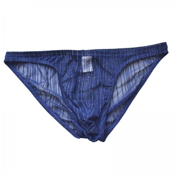 - メンズ ハーフシーム ストライプ シースルー メッシュ ラメ フルバック ビキニ ネイビー 日本M~Lサイズ