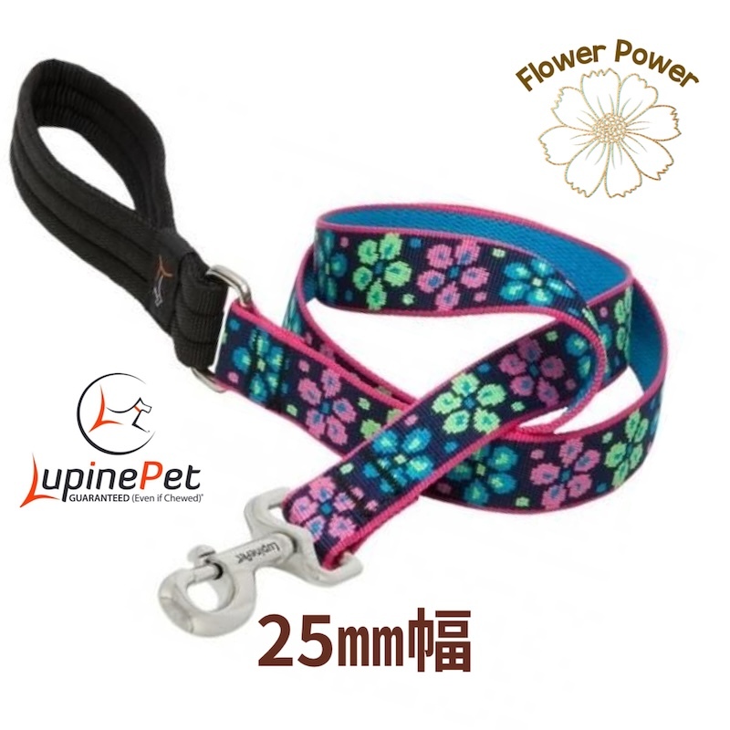 > 120cmリード フラワーパワー柄Flower Power 25mm幅 LUPINE ルパイン パッド付き アメリカ製 軽量 丈夫