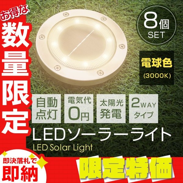 > 【限定セール】8個セット 新品未使用 LED ソーラー ガーデン ライト 電球色 2WAY 埋め込み 置き型 防水 玄関 庭 駐車場 誘導灯 太陽光充電