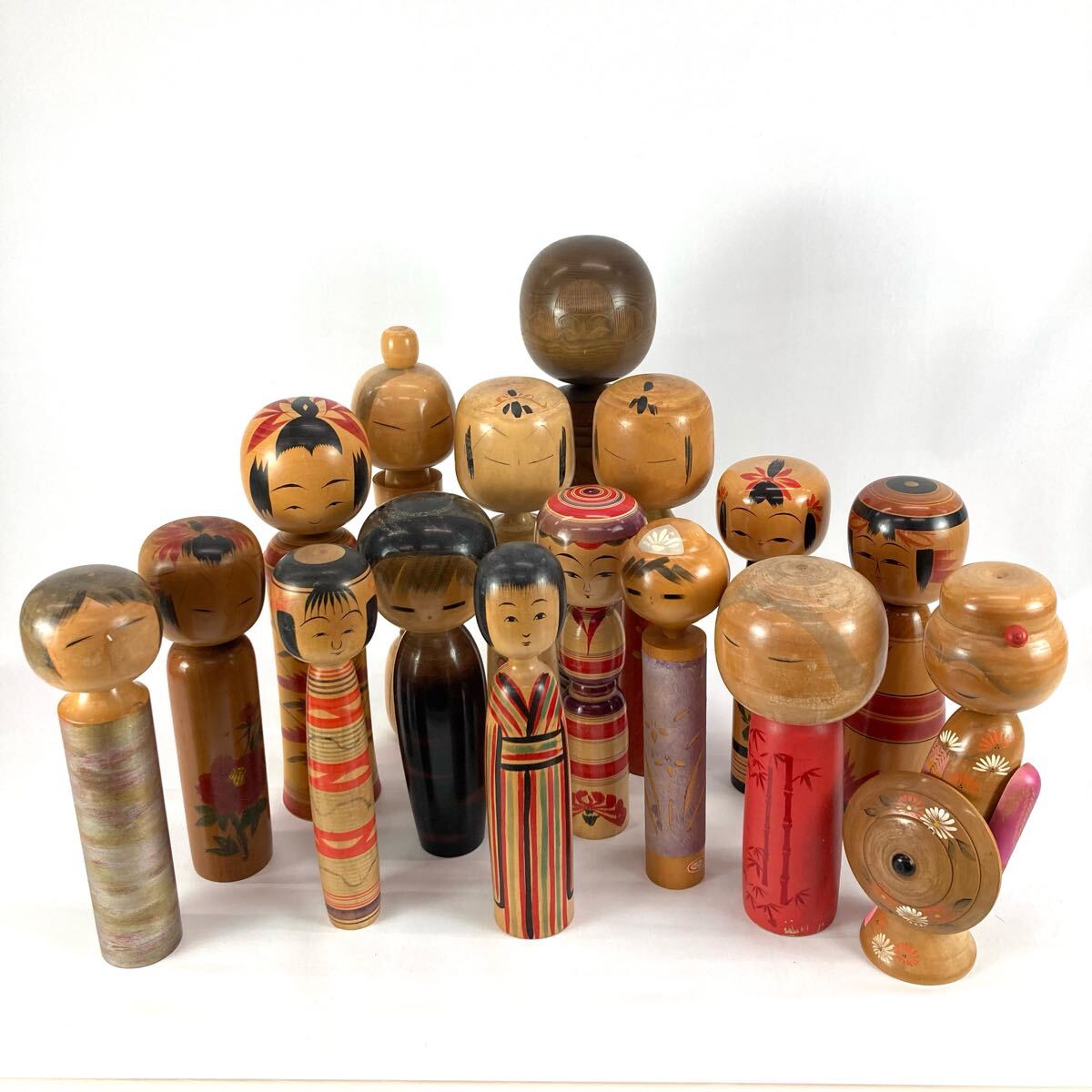- こけし コケシ 伝統工芸品 置物 郷土玩具 民芸品 木製 16体セット 高さ約28-46cm 民芸品 置き物 昭和レトロ