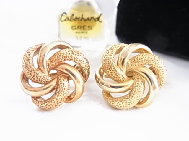 > ビンテージ/ヴィンテージ ゴールドトーン 金色トーン ツイストデザイン調 エレガントな印象 何かの刻印有 レトロイヤリング■
