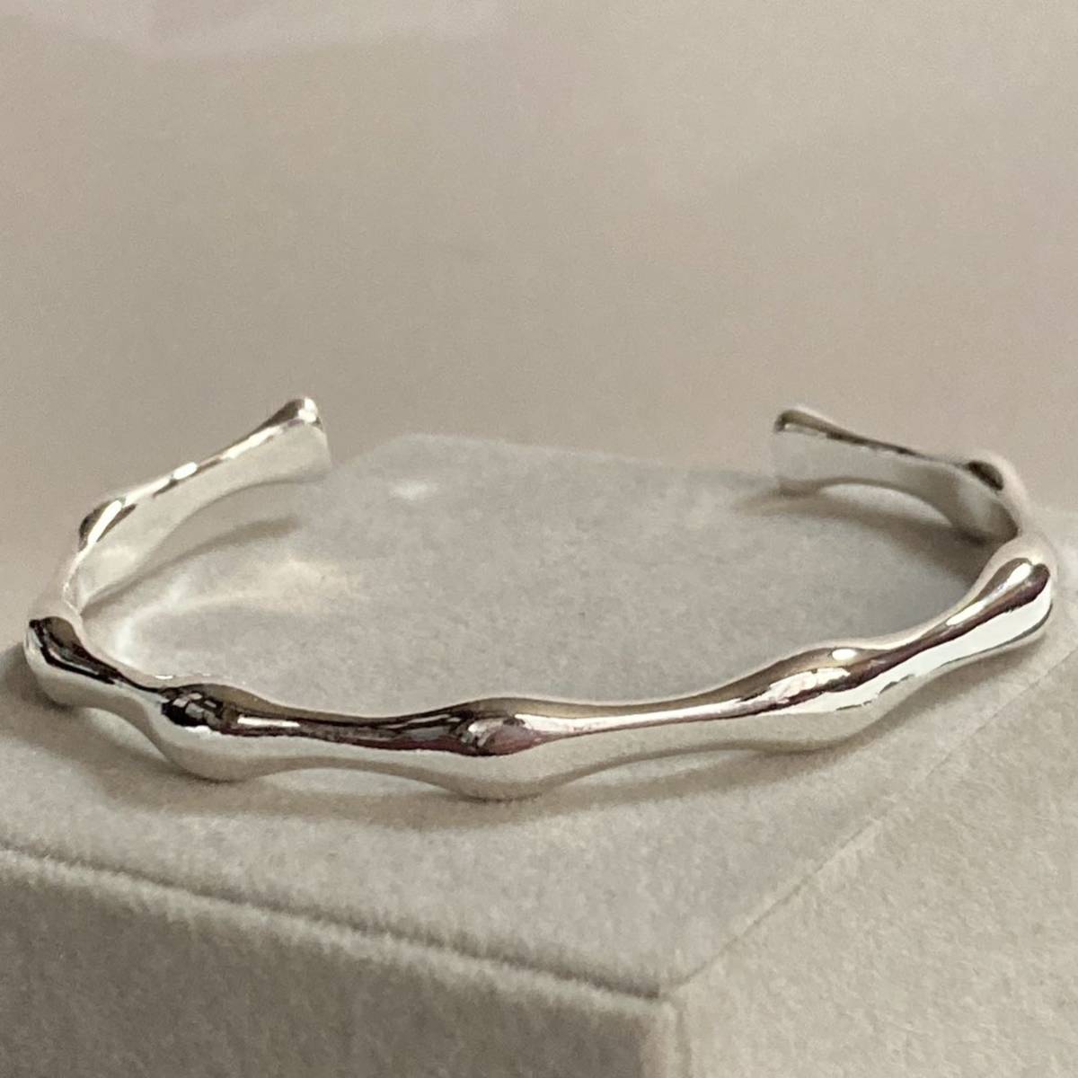 - 【匿名配送】バンブーブレスレット バングル silver925刻印 メンズ レディースアクセサリー プレーン シンプルシルバー ブレスレット