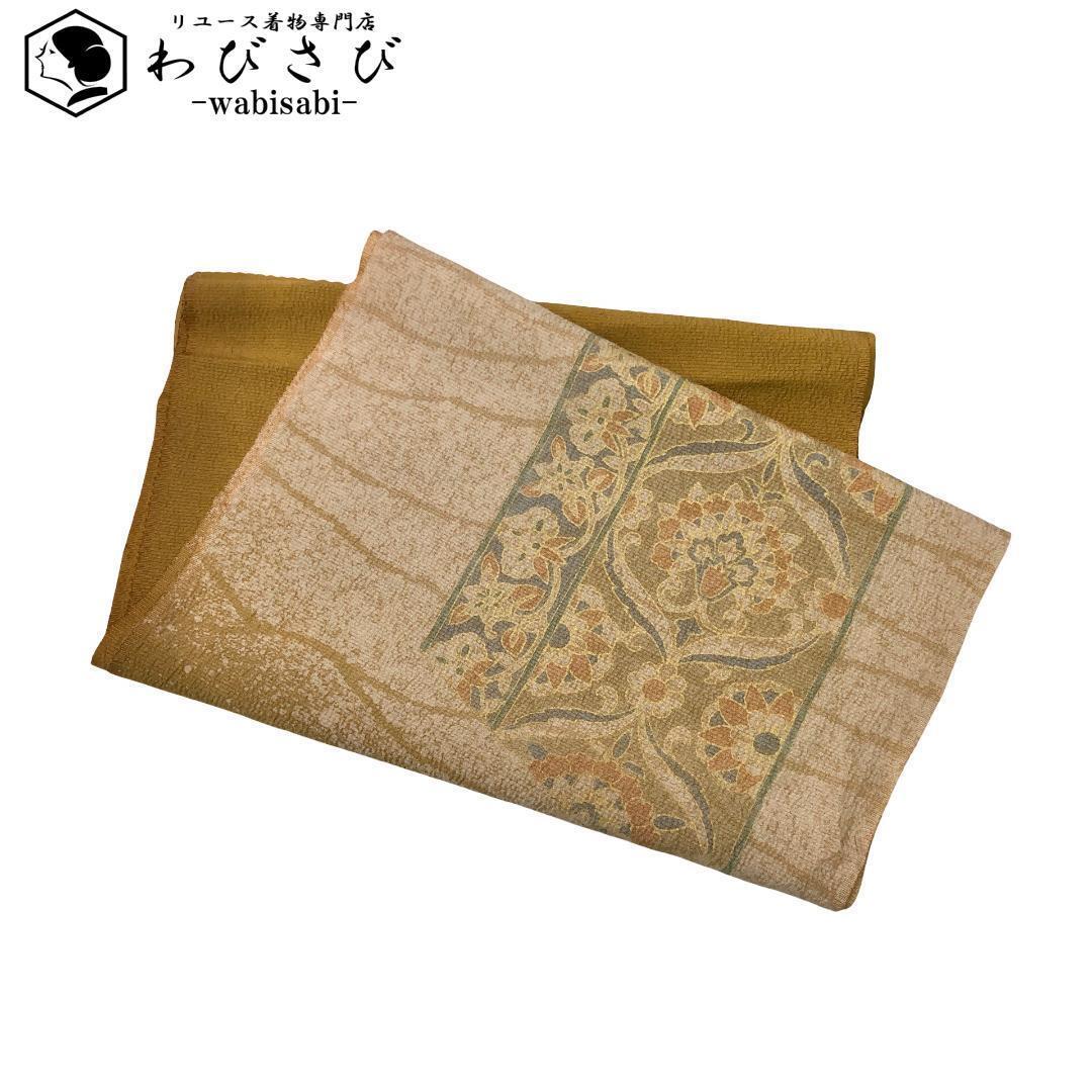 - 和装小物 帯揚げ 正絹 作家物 抽象華模様 縮緬 黄土色 C-6187 着物 きもの kimono 和服 和装 中古 リサイクル着物 【送料無料】