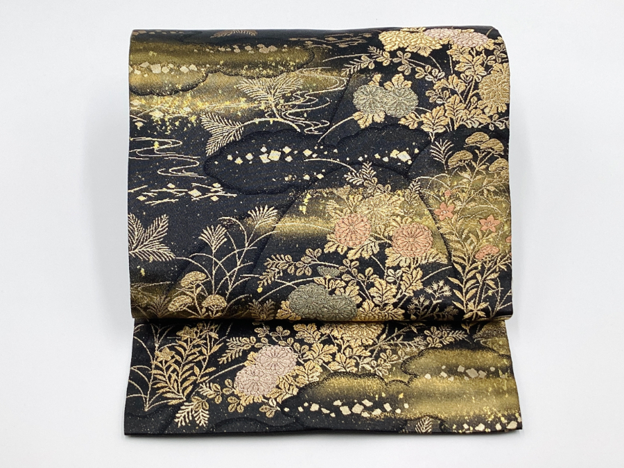 - 中古品 正絹 名古屋帯 引箔 六通柄 蒔絵乃世界 O25003 t