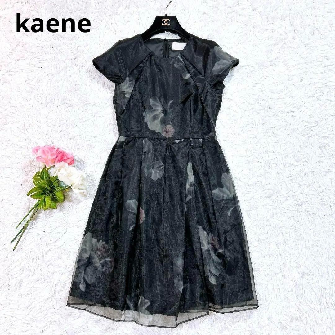 - 【美品】 カエン 花柄フレアワンピース 半袖 Aライン 36