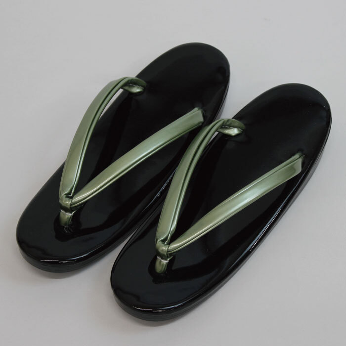 - ウレタン草履 Mサイズ レディース 女性 和装小物 着物 小紋 紬 和装 履物 きもの 黒 ブラック 鼻緒 グリーン 日本製 国産 普段履き