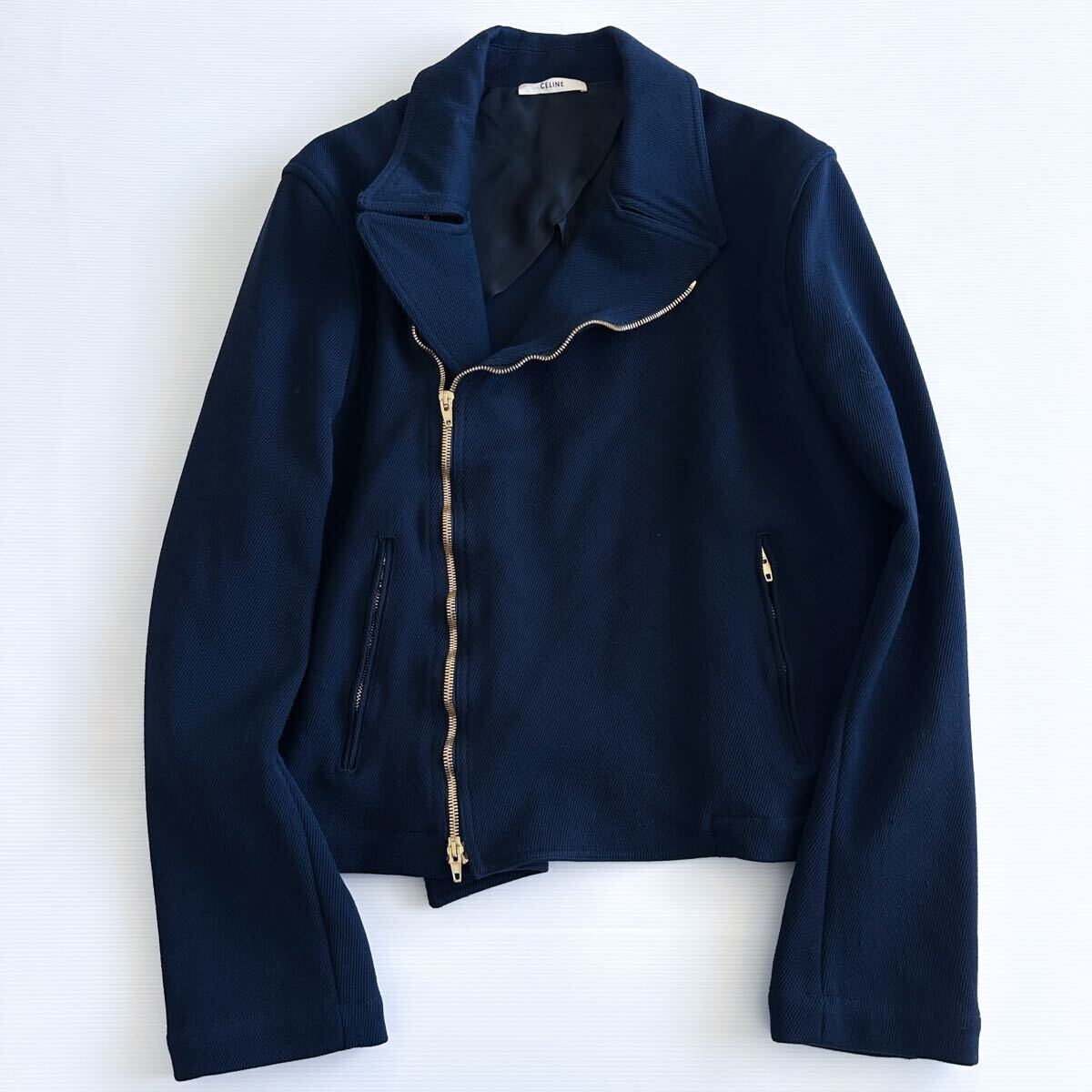 > ★ 【希少フィービー期】CELINE(セリーヌ)/ ウールライダースジャケット ネイビー 38 濃紺 M レア