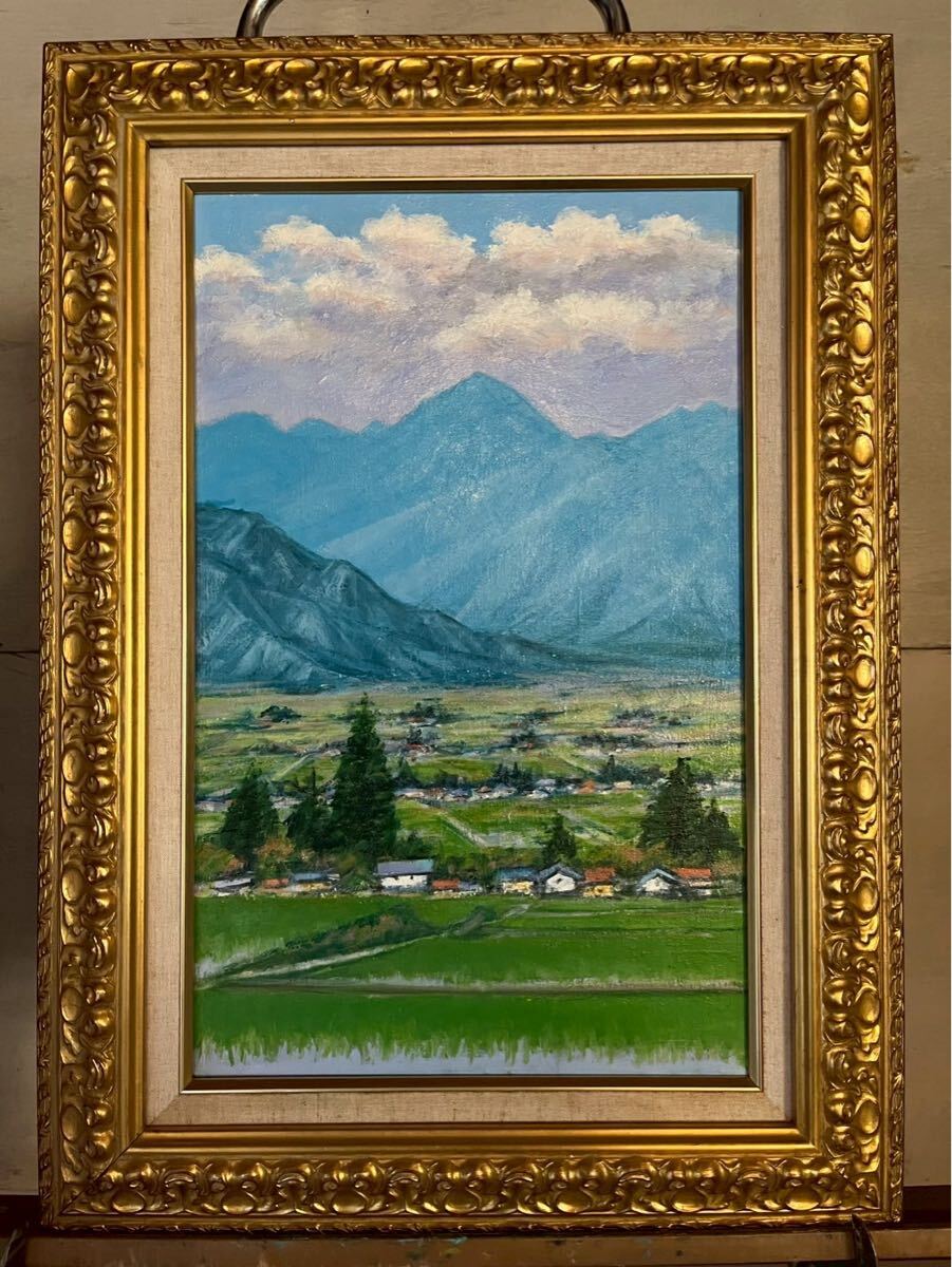- 真作 後藤三男 『 安曇野夏雲 』M10 高級額縁 油彩 大丸百貨店取扱作品 日本山岳画協会員 個展日本橋三越本店他 風景画 額付絵画 額装