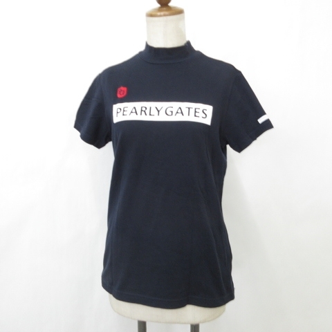 > パーリーゲイツ PEARLY GATES シャツ ゴルフ スポーツウェア 半袖 ハイネック ロゴ 紺 ネイビー 2 レディース