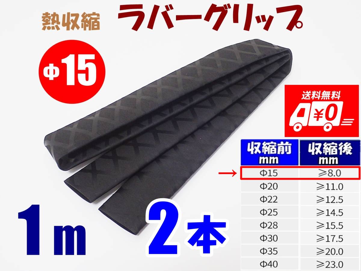 > 【送料込】熱収縮 ラバーグリップ Φ15mm 2m(1m2本) 黒 ロッド、釣竿、工具、ラケットの滑り止め・修理用に 釣り用品 チューブ