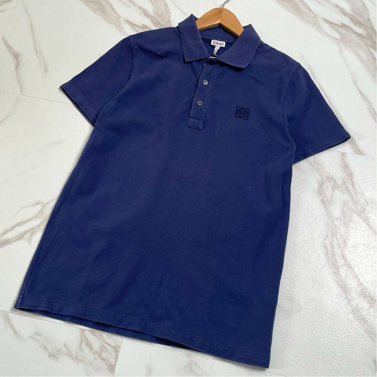 > 現行タグ●LOEWE ロエベ ポロシャツ 半袖シャツ Tシャツ 胸ロゴ アナグラム 鹿の子 ストレッチ ゴルフウェア アウトドア ネイビー 紺色