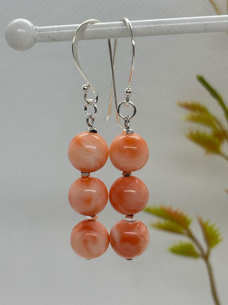 - 天然桃珊瑚 国産サンゴ 8.52mm 可愛いS925ピアス(850)