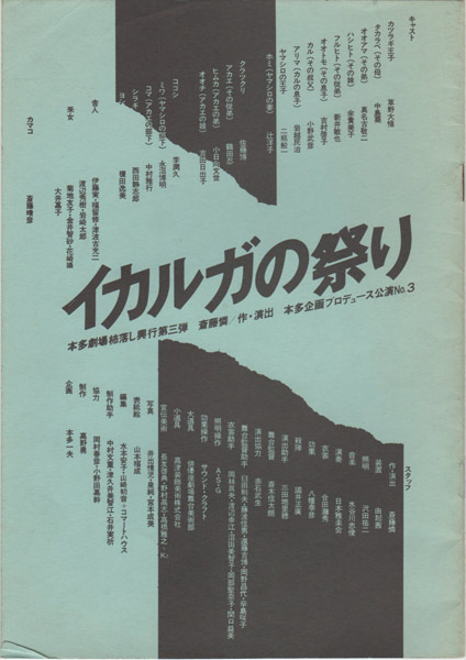コメント 作・演出:斎藤憐 キャスト:草野大悟、中島葵、真名古敬二 1983年1月 下北沢本多劇場