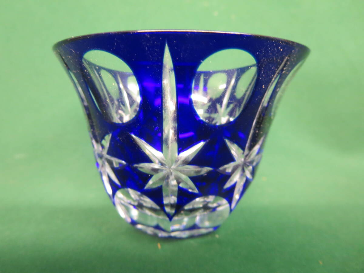 - 送料無料 切子 青 紺 ガラス 酒器 御猪口