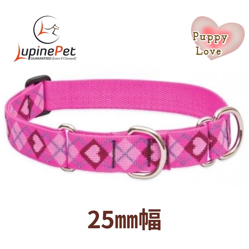 > ハーフチョークカラー・Mサイズ・25mm幅 パピーラブ柄 38-55cm LUPINEルパイン アメリカ製 軽量 丈夫
