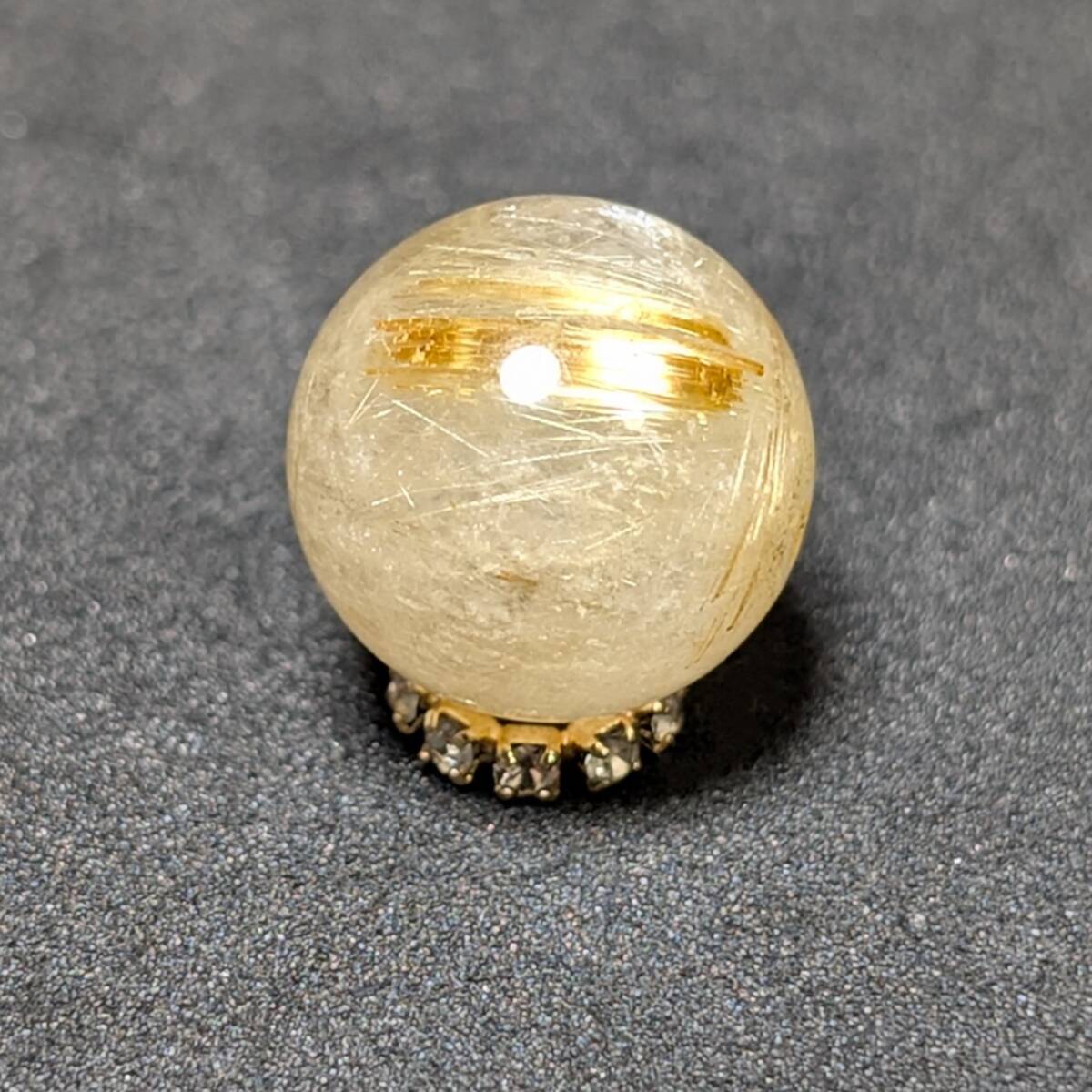 - 独特な表情が見られる ゴールド タイチンルチル 13ミリ 金針入り水晶 1粒売り 貫通穴あり パワーストーン お守り効果 天然石 贈り物 ギフト