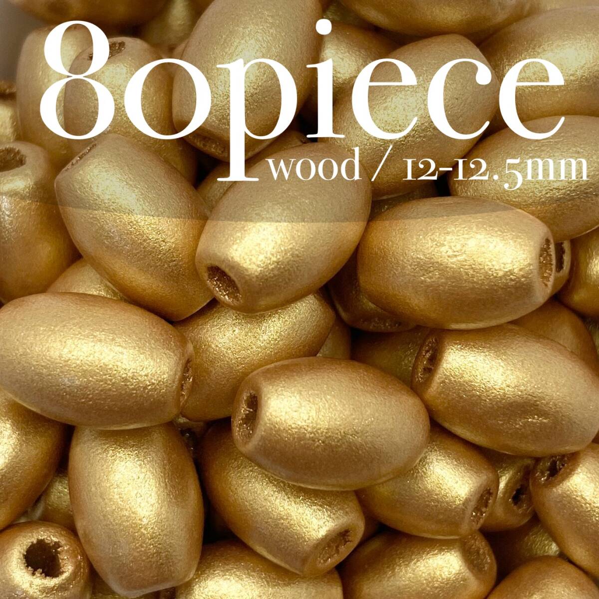 - WBG【 ウッドビーズ オーバル ゴールド 80piece 12-12.5mm 】セット 楕円 アソート 木製 素材 材料 ハンドメイド パーツ アクセサリー 大量