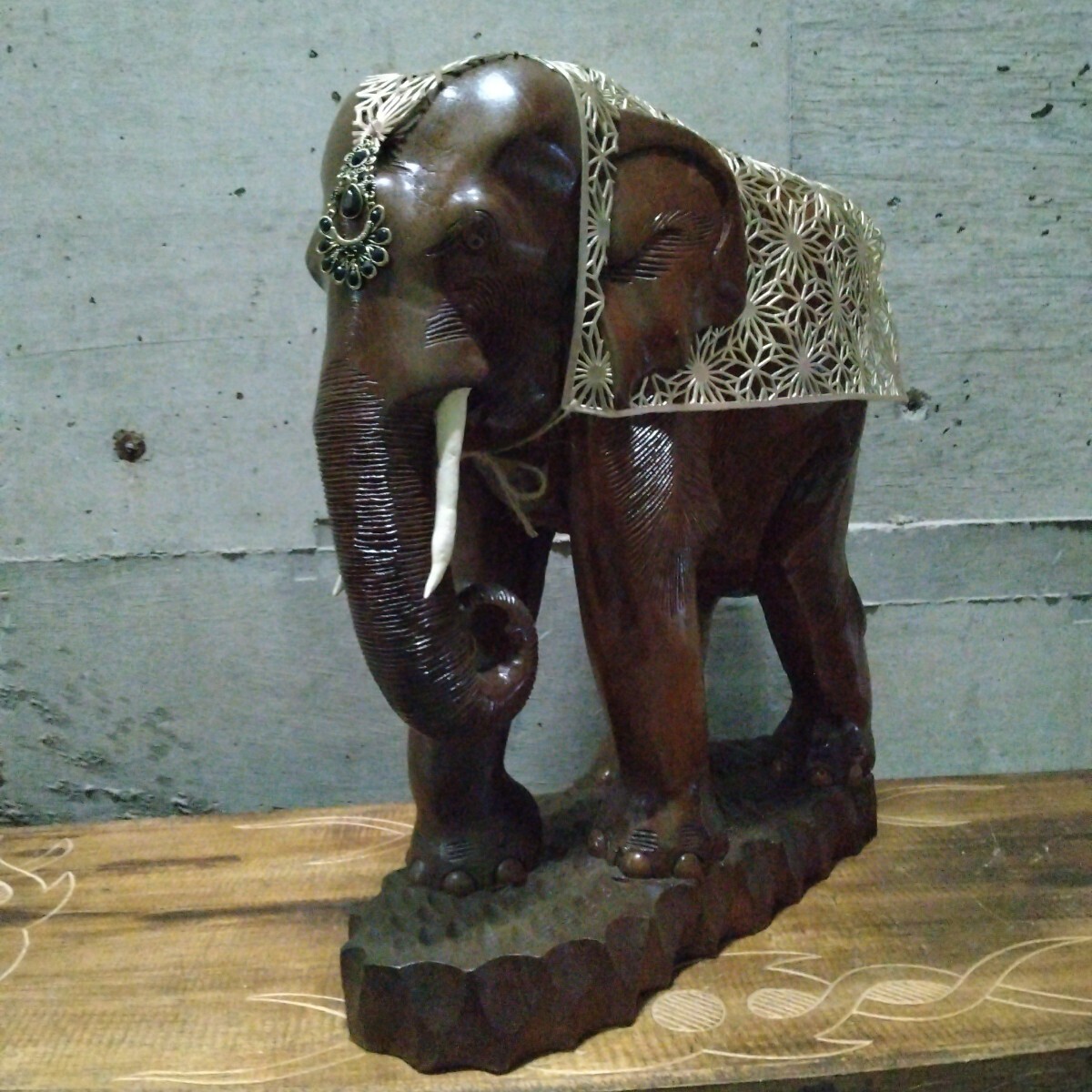 - 高さ50cm 木彫り ゾウ ビックサイズ 象 特大 置き物 アジアン雑貨 招福 インテリア 置物 保管品 民芸品 木工芸