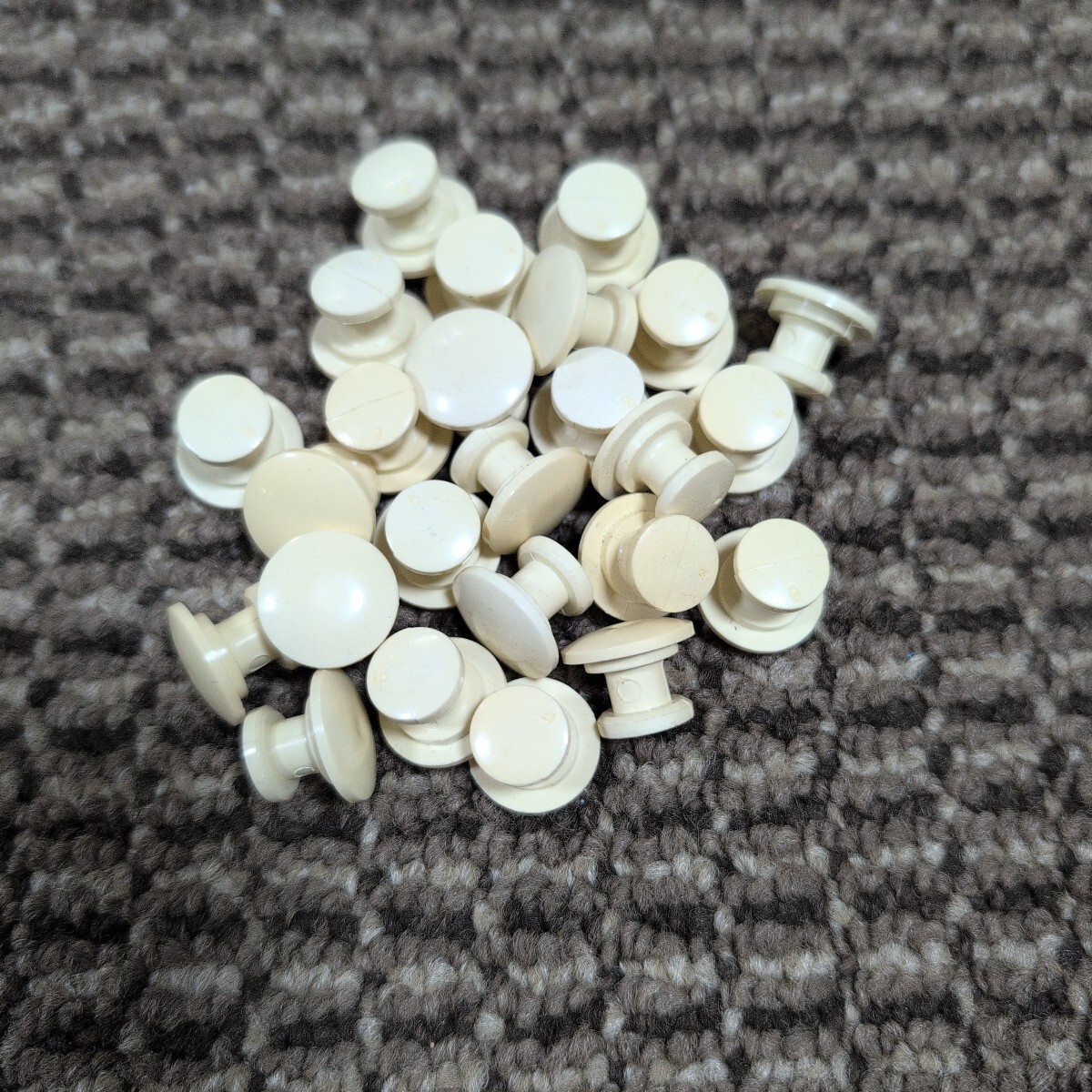 - ジャンク品/長期保管品/メーカー不明/戸当たり/プラスチック/打ち込み式/上Φ14中Φ6下10厚T11mm/アイボリー/1P24個入り