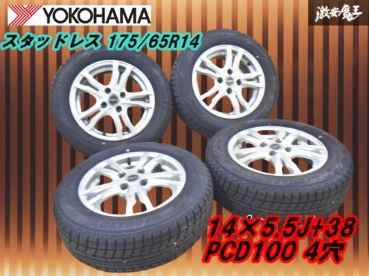- ●【ヨコハマ バリ山 スタットレス 175/65R14 】FEID 14インチ 5.5J +38 PCD100 4穴 即納 コンパクトカー マーチ キューブ ノート 棚W-2