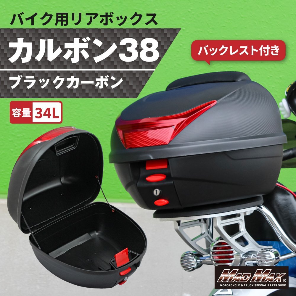 > バイク用品 オートバイ用 リアボックス カルボン38 バックレスト付 34L カーボン調 ブラック リフレクター レッド 通勤 通学 防水 防塵