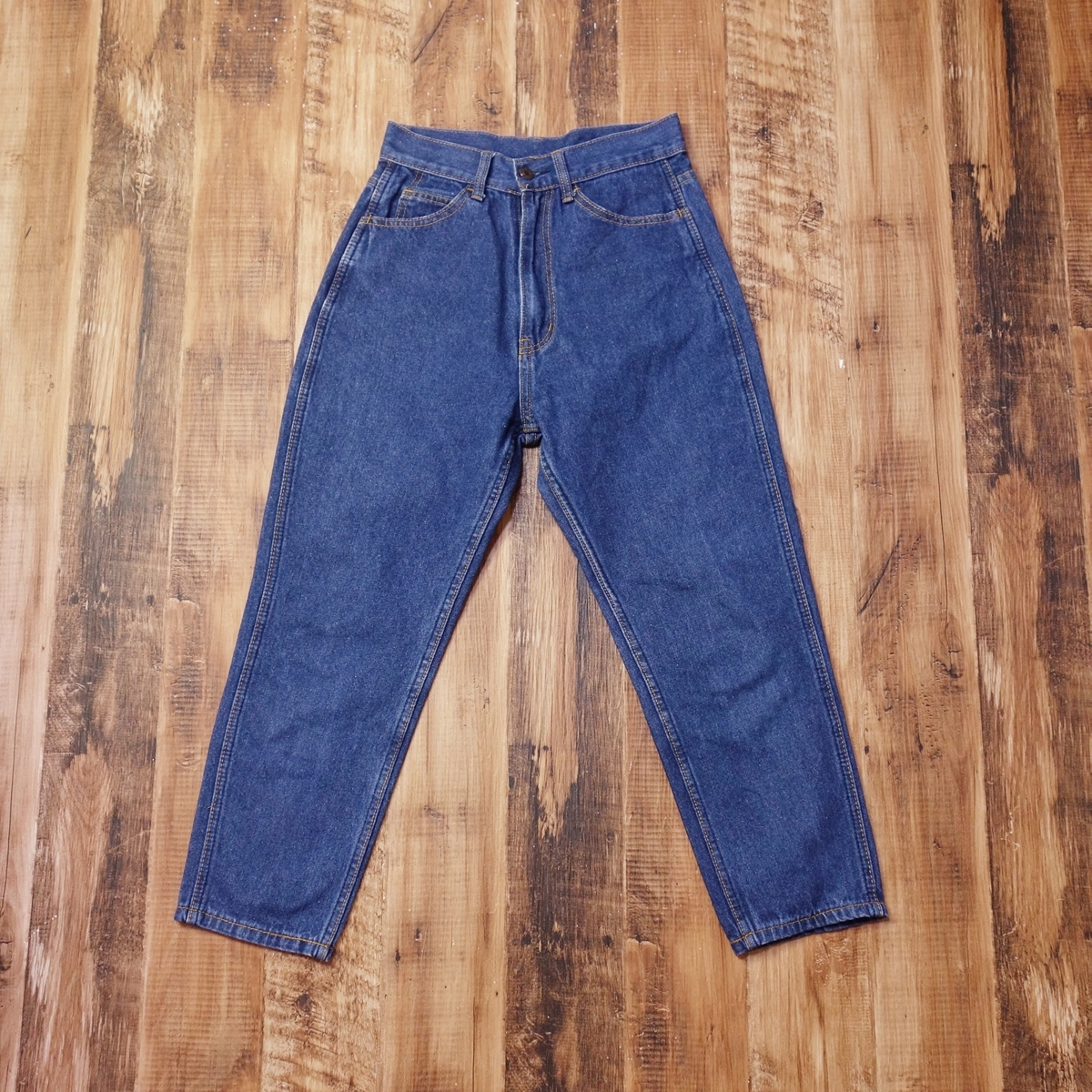 - 美品 ハイウエストテーパードデニムパンツ レディース クロップド アンクル丈 ジーパン Mサイズ ブルー LV32