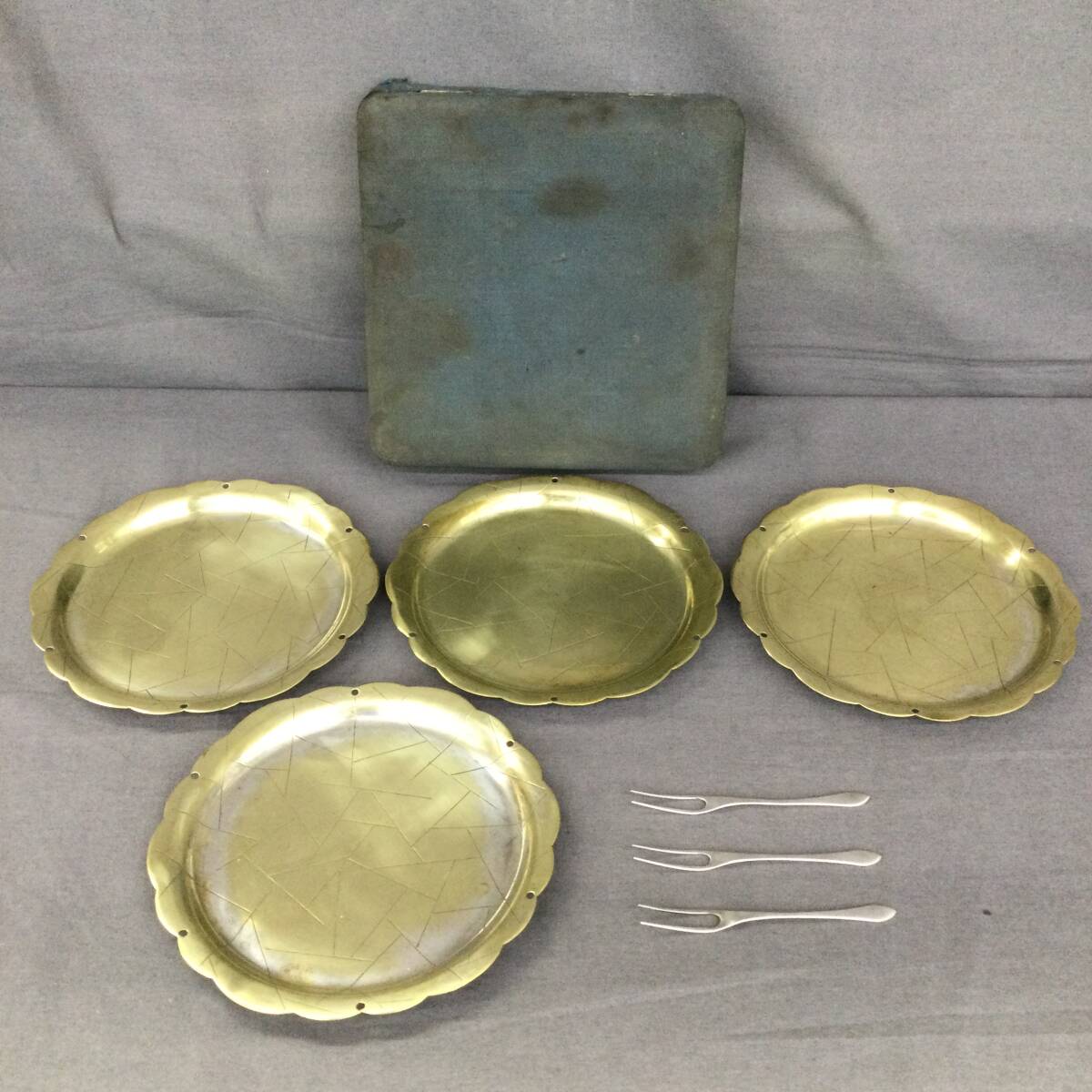 > 070718 292969 尚美堂 シルバー食器 銀製品 ケース入り(プレート4点・フォーク3点) コレクション 趣味