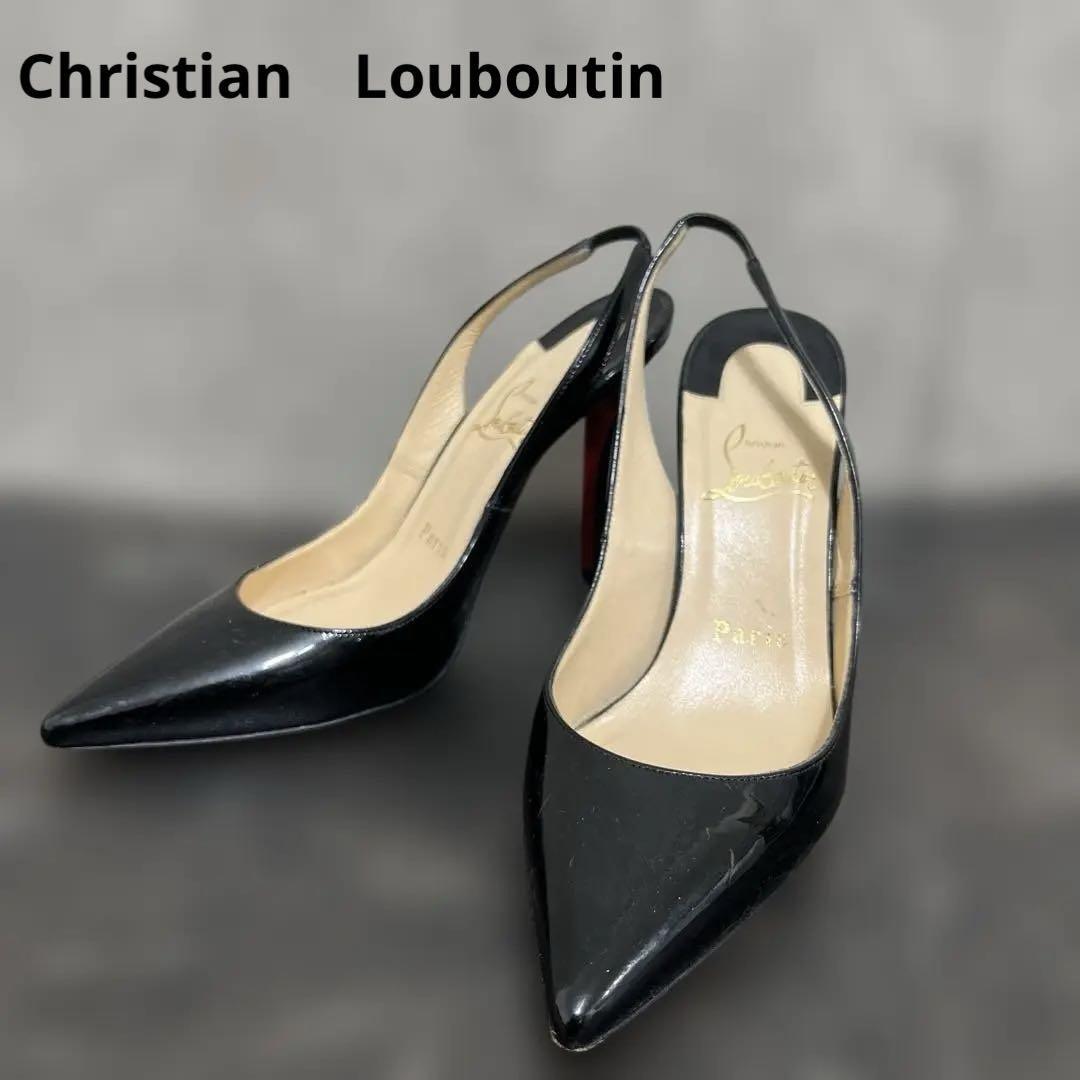 - クリスチャンルブタン ゴムストラップ エナメルパンプス ブラック 35