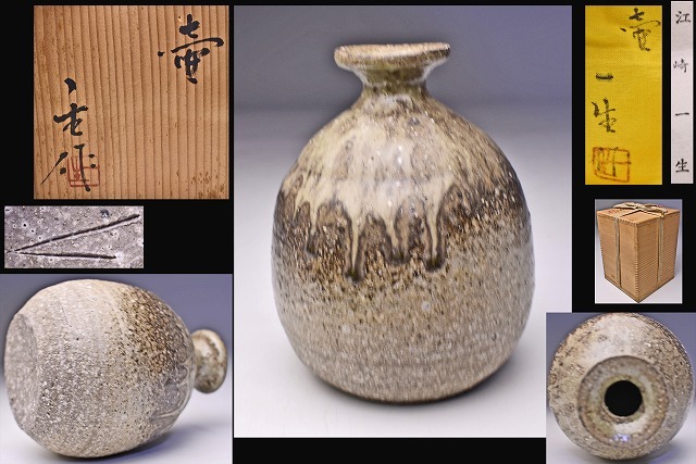 > 江崎一生 ★ 常滑 灰釉 壷 ★ 共箱 共布 栞 ★ 常滑焼 ★ 徳利 にも ★ 花器 ★ 酒器 ★ 日本六古窯の一つ ★ 渋く味わい深い作品 ★