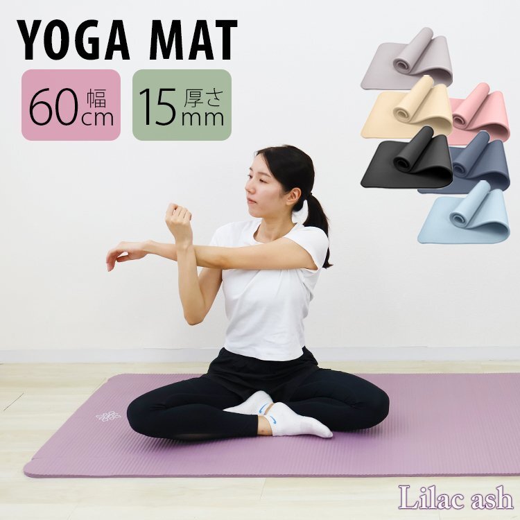 - 【ライラックアッシュ/180×60cm/厚さ15mm】ヨガマット 軽量 ストレッチ ピラティス ホットヨガ ダイエット エクササイズ 筋トレ 宅トレ