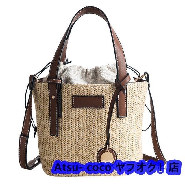 - 海外人気ブランド 女性レディースハンドバックバスケット藁バッグショルダー トートバック キャンパス夏☆2色選択/1点