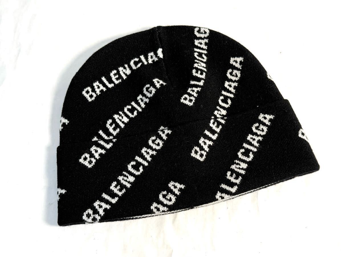 - 極美品 BALENCIAGA バレンシアガ MINI ALLOVER LOGO BEANIE 719580 ミニオールオーバー ロゴ ビーニー ニット帽 ブラック/ホワイト