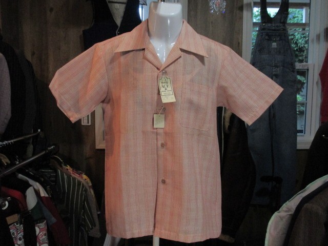 > 希少 新品 タグ付き 国産ヴィンテージ オープンカラーシャツ ピンク ロカシャツ 日本製 昭和レトロ ROCKNROLL ROCKABILLY ROCKERS 50’S