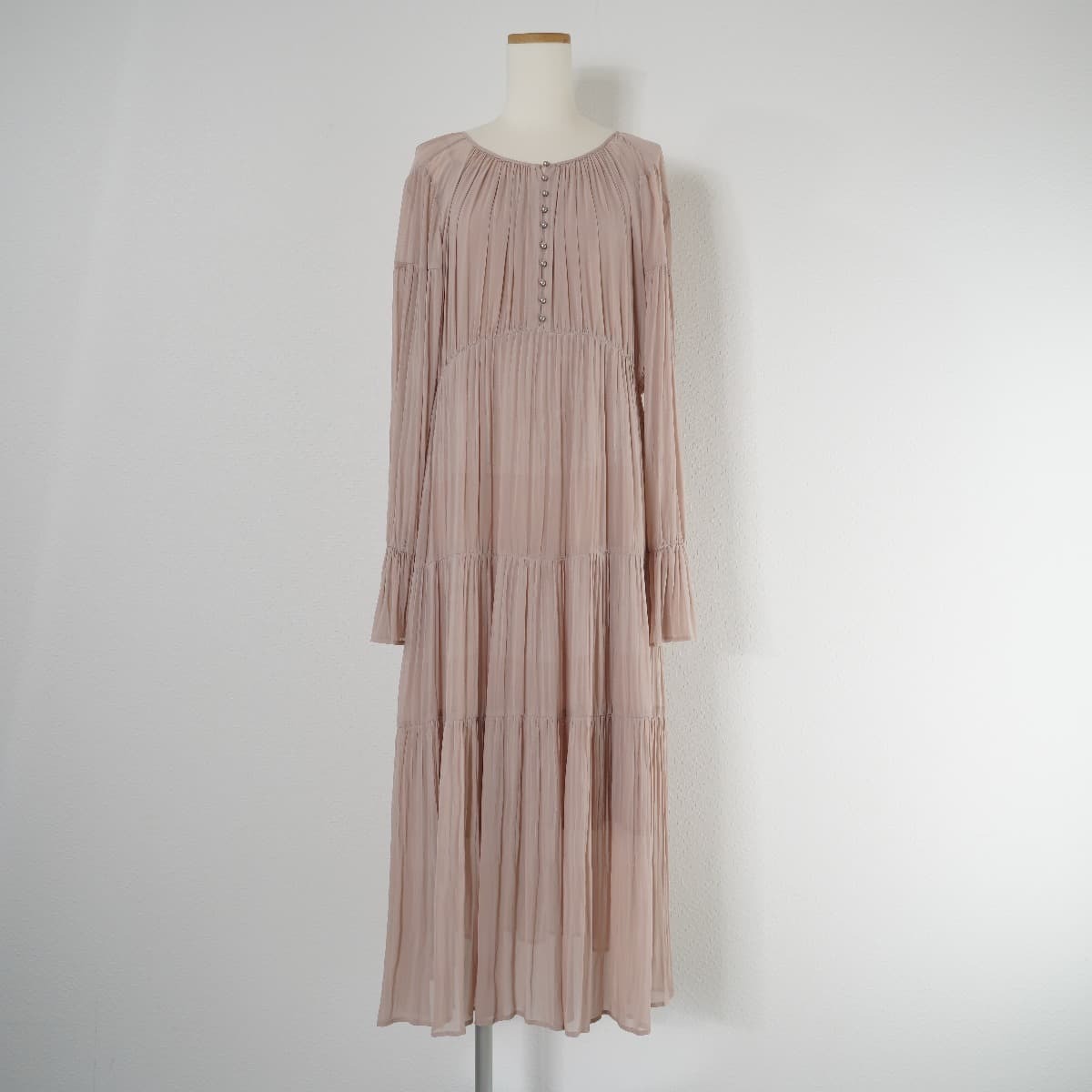 商品名:FRAY I.D フレイ アイディー シフォンプリーツロングワンピース ティアード ドレス ロング 長袖 透け感 とろみ素材 ピンク