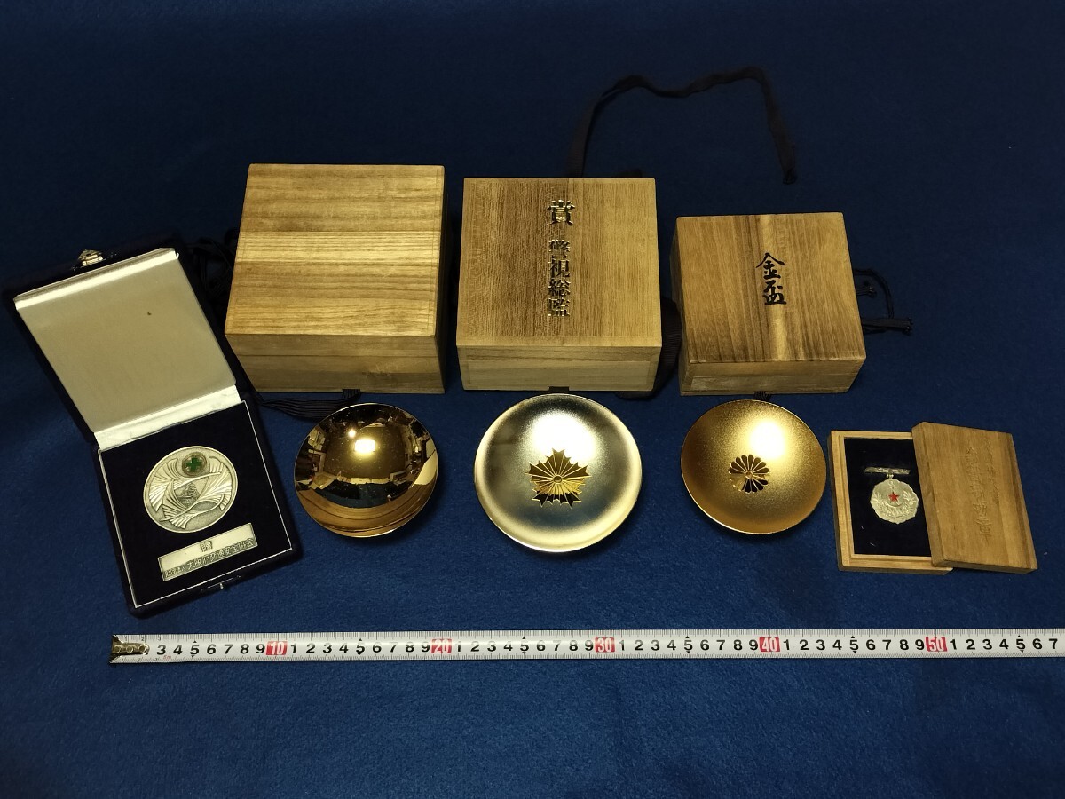 - 警視総監賞 十六紋菊金盃 愛国婦人会有効賞 交通安全協会 無地金杯 セット お得品