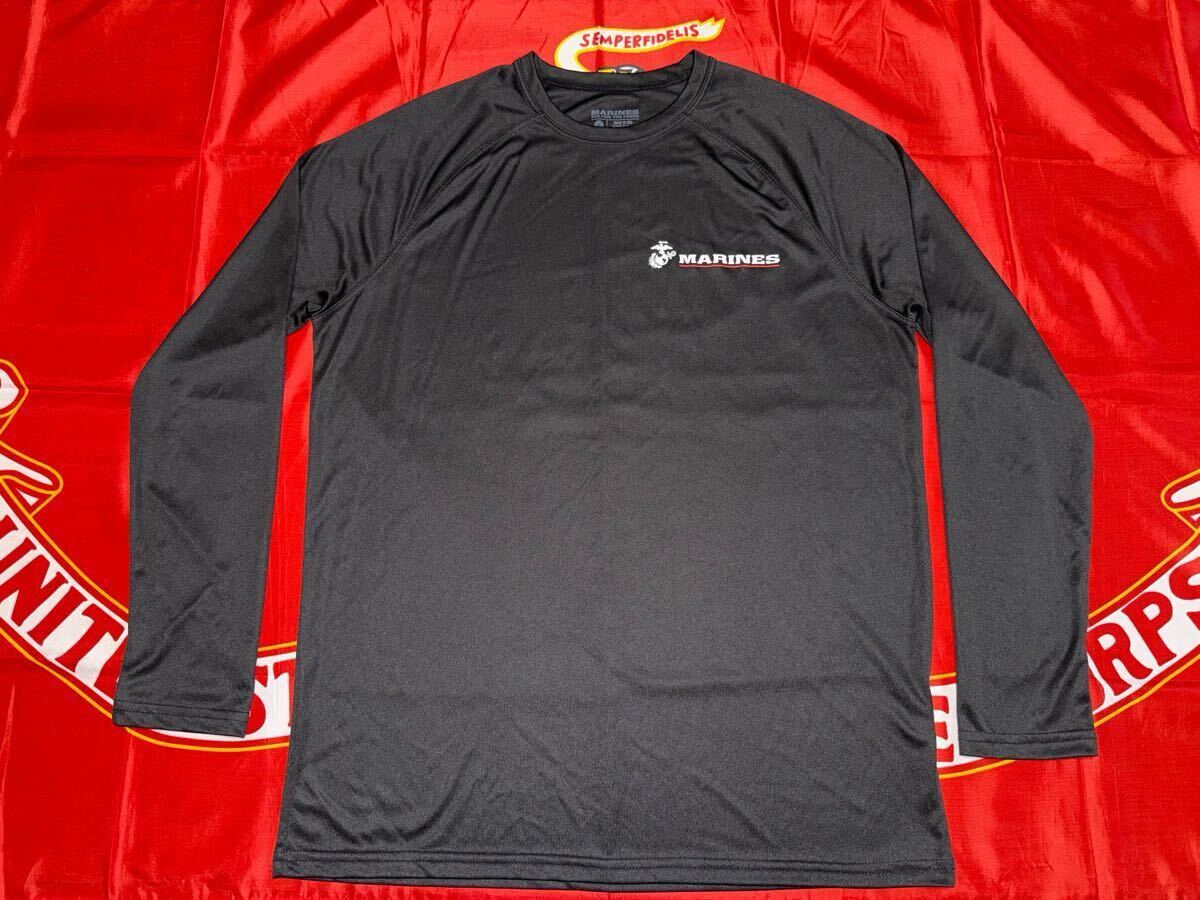 > 新品未使用 USMC OFFICIAL ロングスリーブドライシャツ PAIN IS WEAKNESS LEAVING THE BODY. MEDIUM BLACK