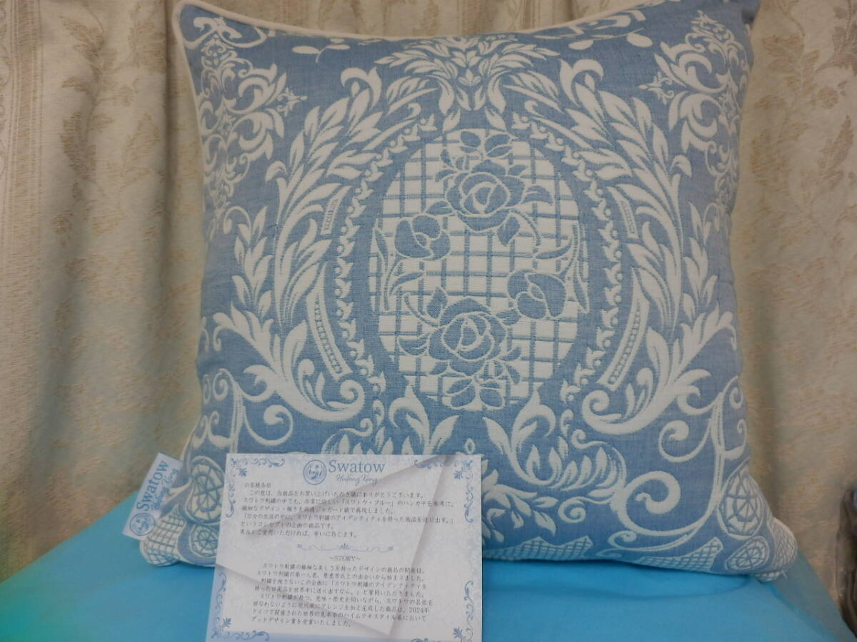 > 【未使用:極美品】スワトウ クッション(※カバーとクッションのセット)(ブルー地 x ホワイト)