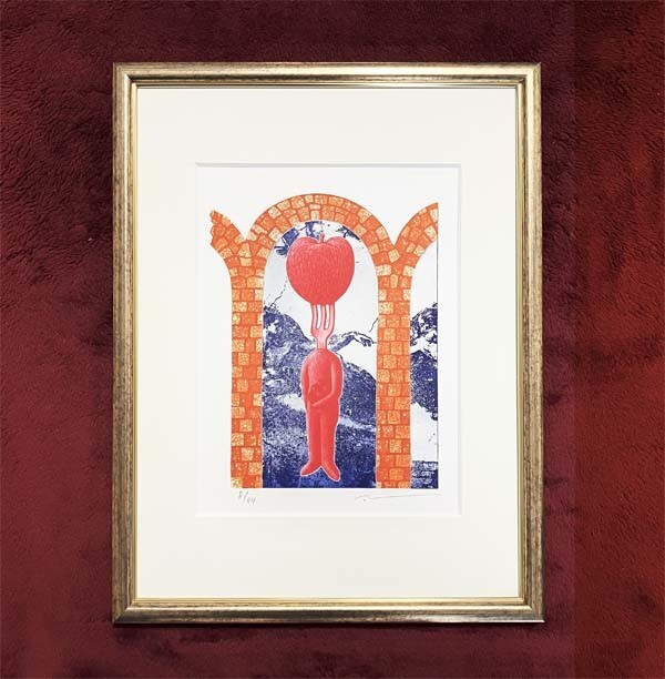 - 綿引明浩●真作●わたびき あきひろ●インタリオ版画 8/44 直筆サインあり■タイトル『偉大なリンゴ』■西武美術館版画大賞優秀賞など入賞