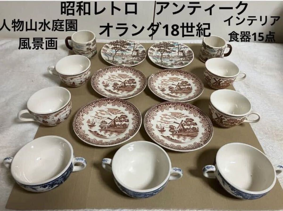 > 昭和レトロ アンティーク オランダ18世紀の人物山水庭園風景画 インテリア食器