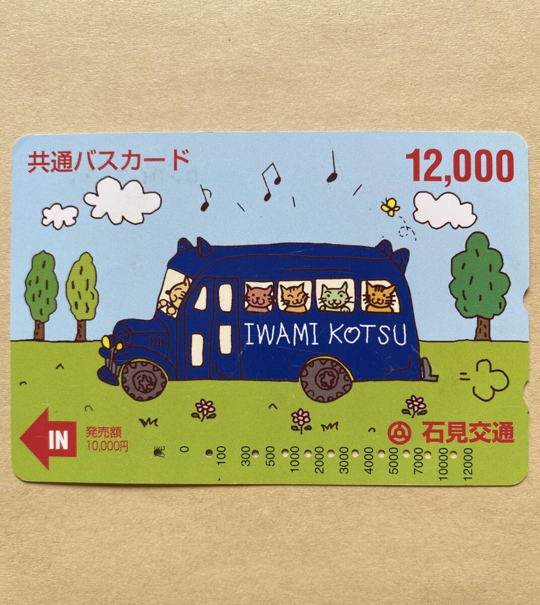 - 【使用済】 バスカード 石見交通 バス イラスト 青