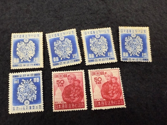- 6、日本切手 日本国憲法 2種7枚 未使用品