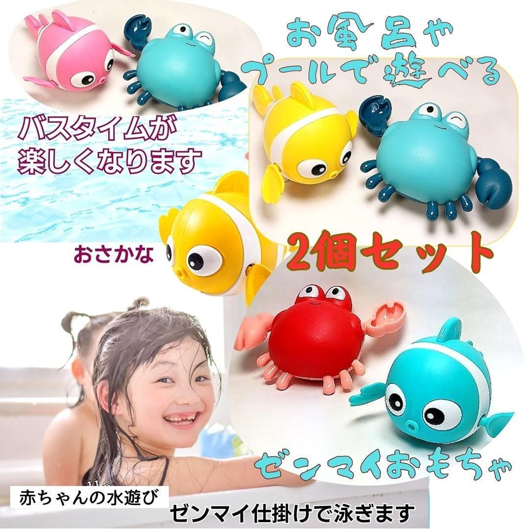 - 泳ぐおさかなとカニのゼンマイ玩具 赤ちゃんの水遊びのおもちゃ お風呂やプールで!